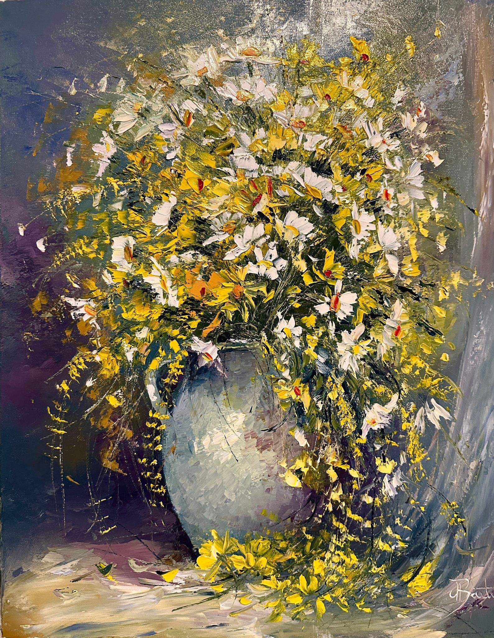 Pictura in ulei pe panza, realizata manual in cutit, Dim. 50*40 cm, neanramata