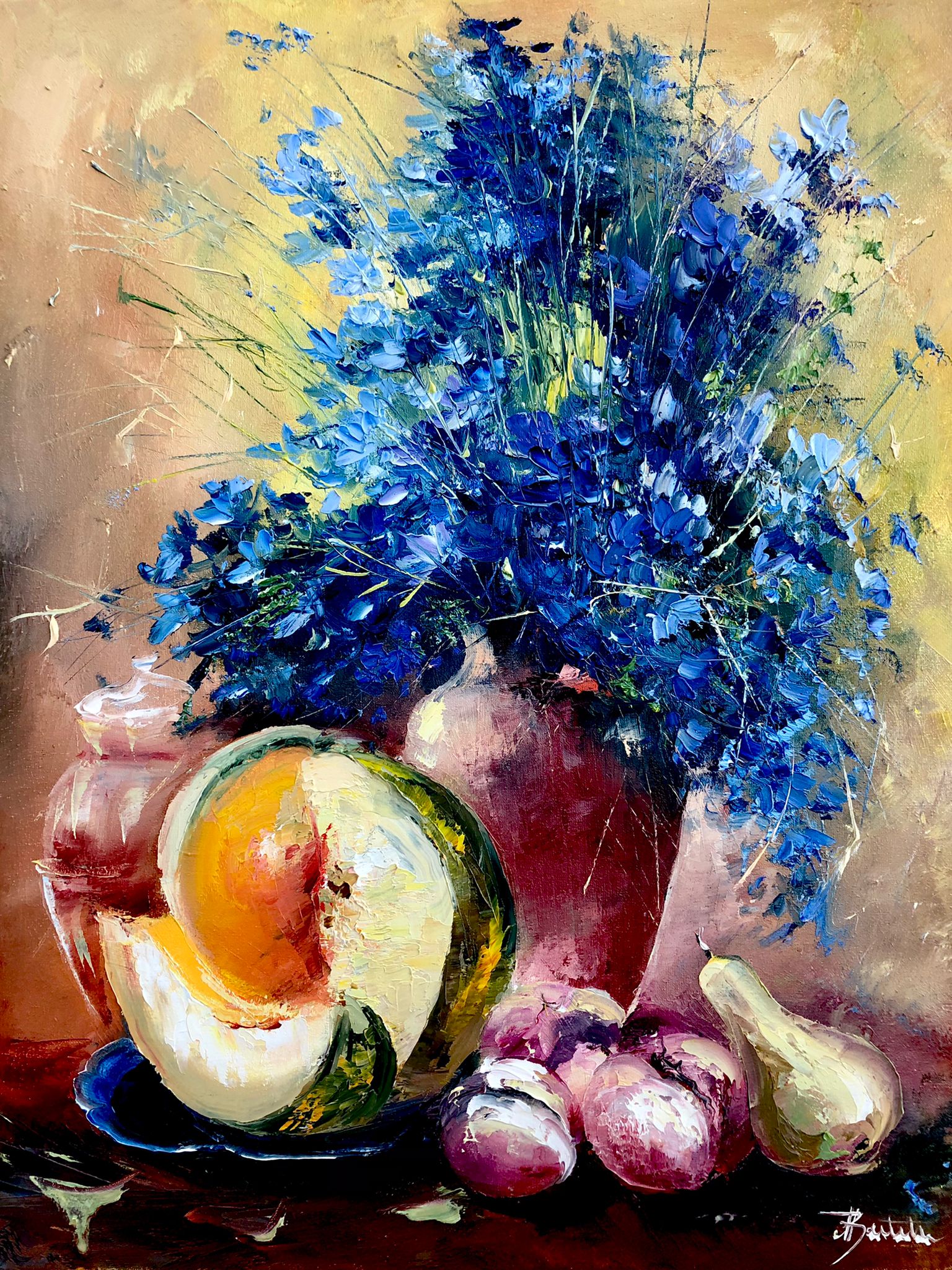 Pictura in ulei pe panza, realizata manual in cutit, dim. 55*45 cm, disponibil inramat.