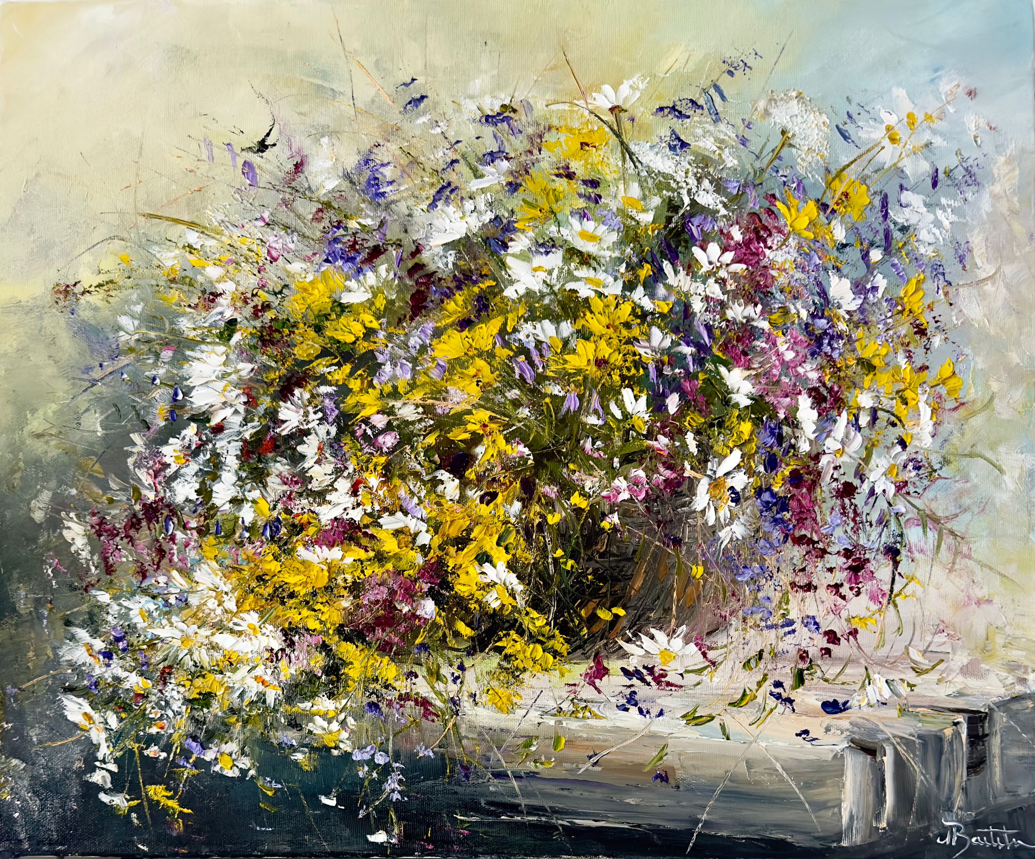 Pictura in ulei pe panza, realizata manual in cutit, dimensiuni : 50*60 cm, disponibila fara rama care se poate pune la cerere.