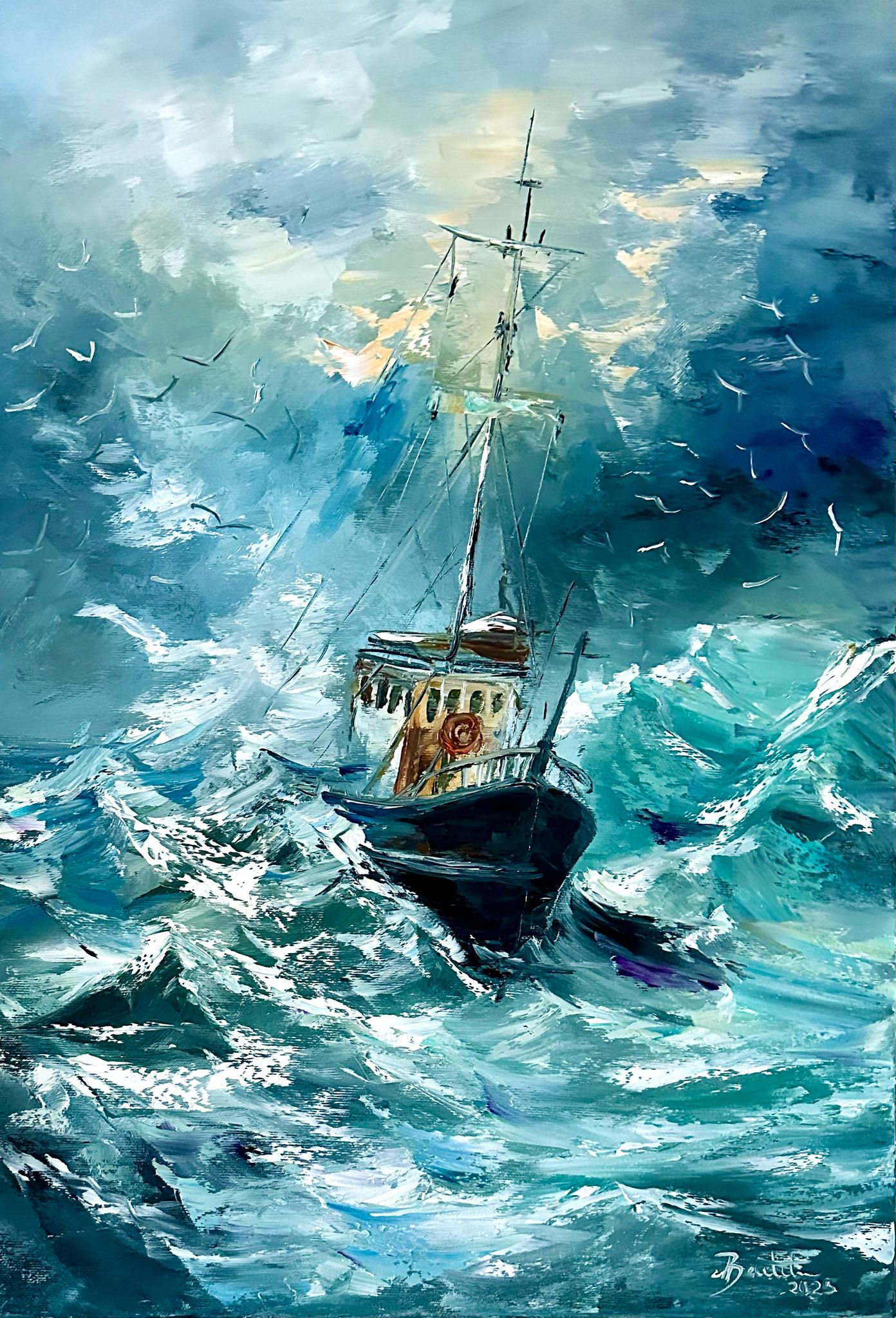 Pictura in ulei pe panza, realizata manual in cutit, dimensiuni 65*45 cm