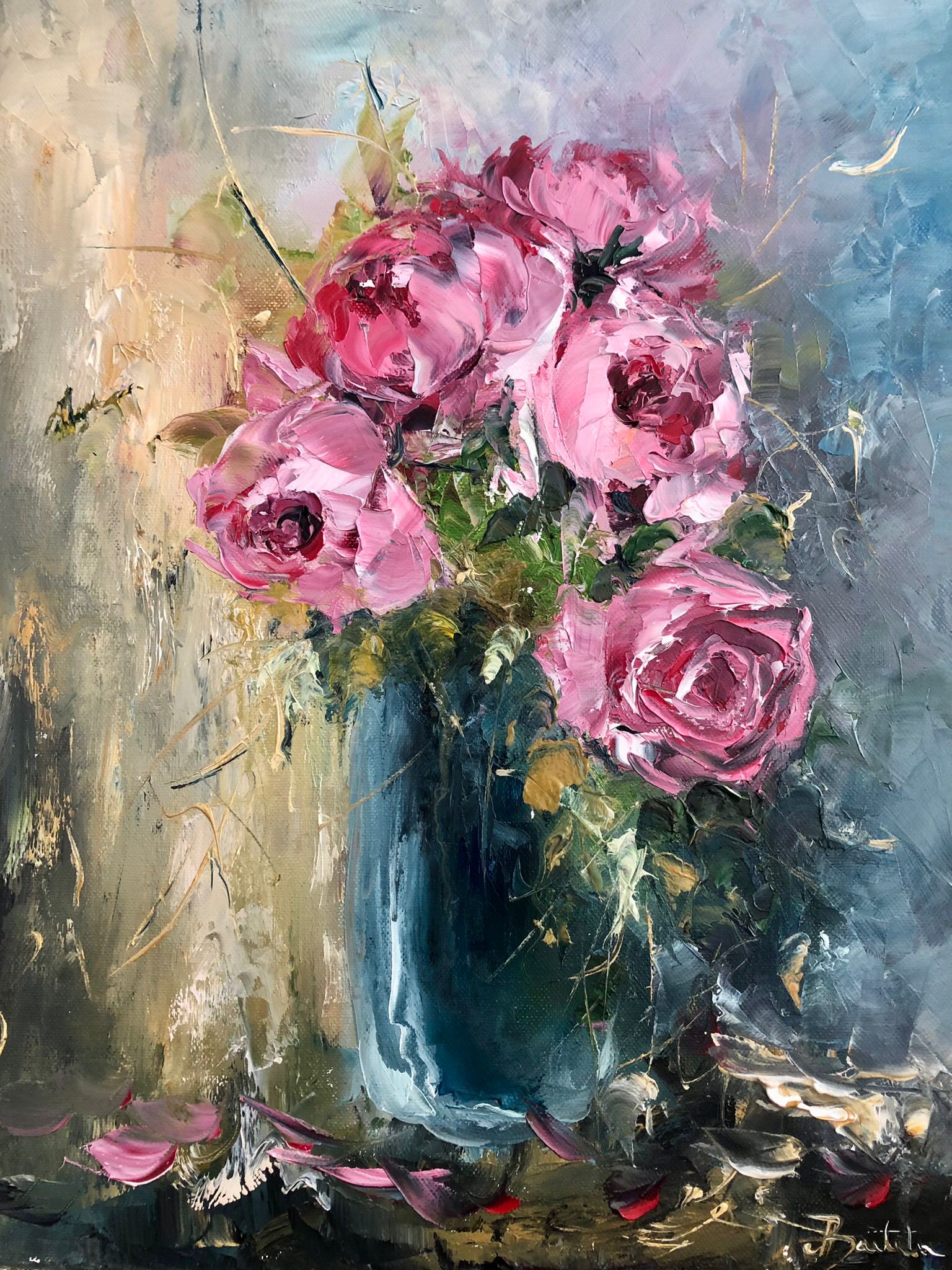 Pictura in ulei pe panza, realizata manual in cutit, dim.41*33 cm, disponibil neinramat. Se poate inrama la cerere.