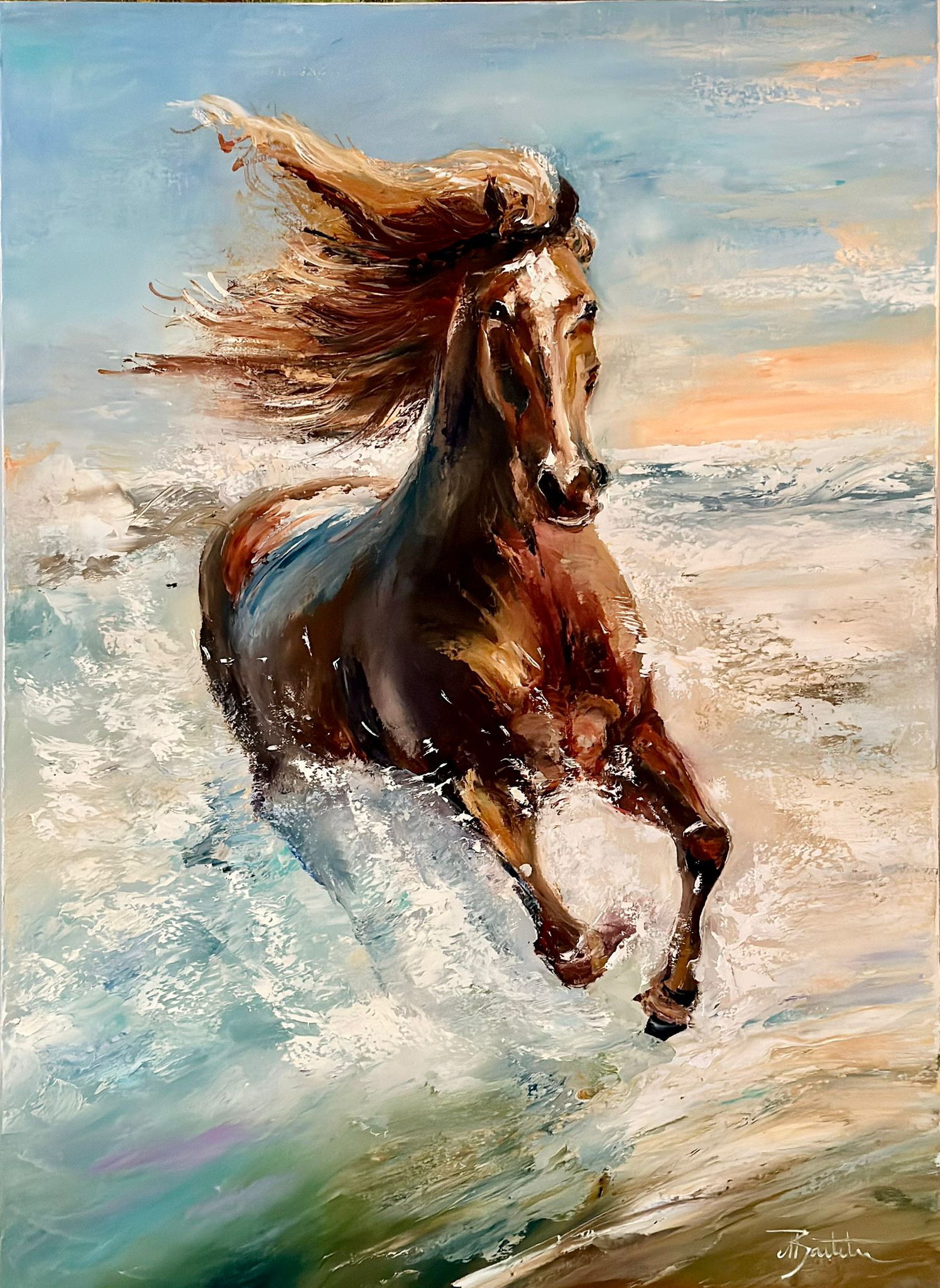 Pictura in ulei pe panza, realizata manual in cutit, dim.70*50 cm, disponibil neinramat
