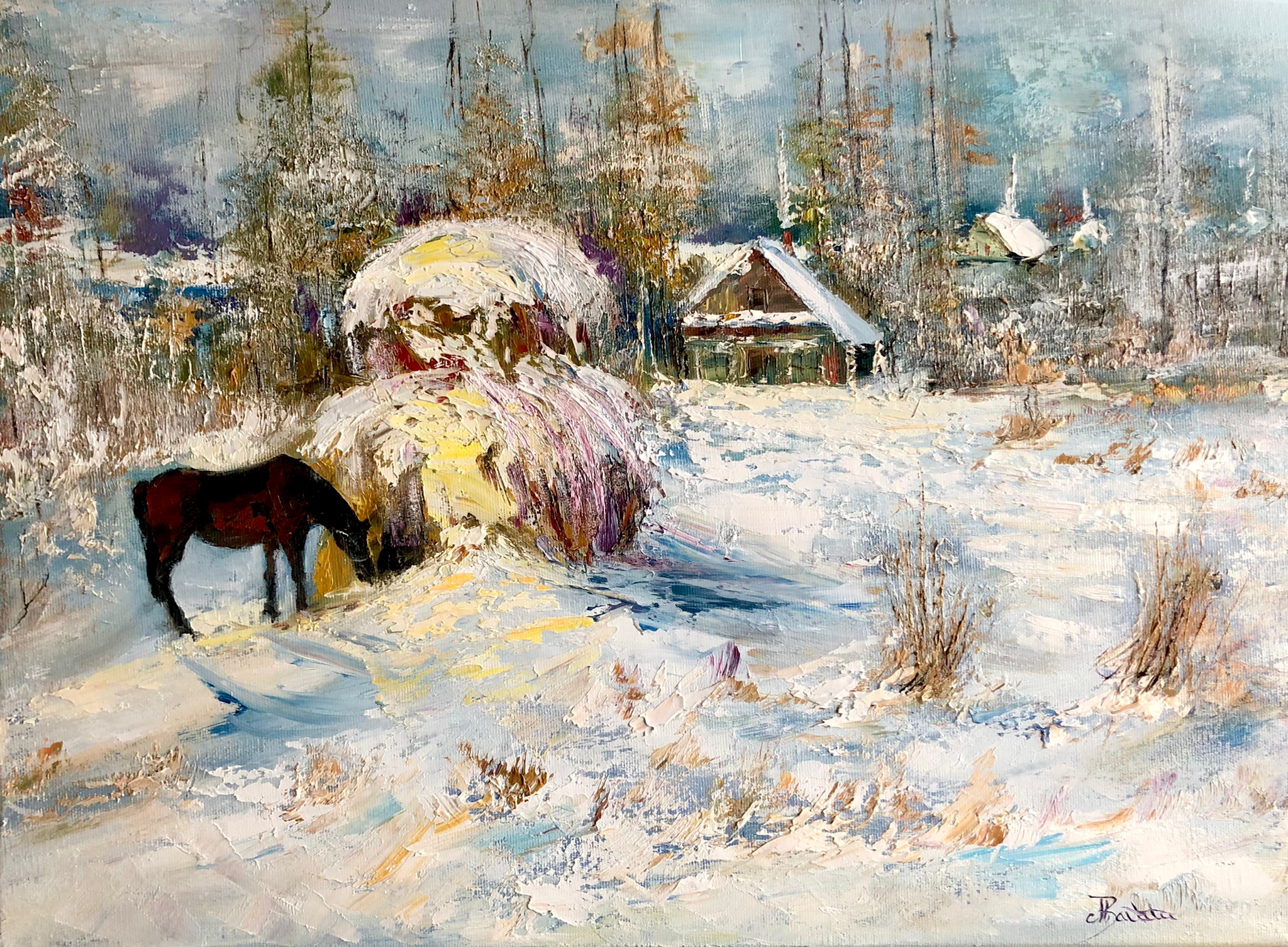 Pictura in ulei pe panza, realizata manual in cutit. Dim. 42*57 cm.Pretu nu include rama care se pune doar la cerere.