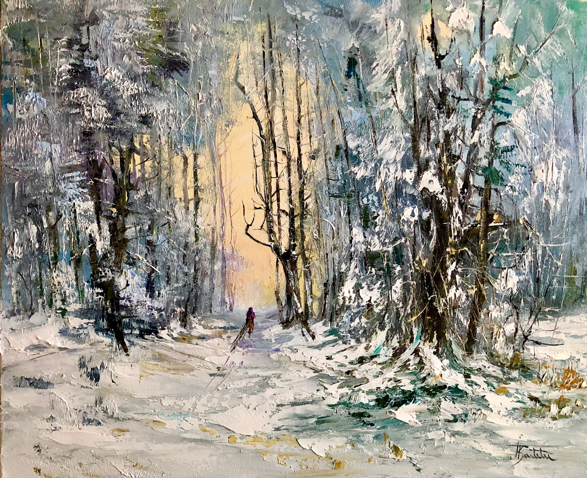 Pictura in ulei pe panza, realizata manual in cutit. Dim. 45*55 cm. Pretul se refera la pictura fara rama care se poate pune la cerere.