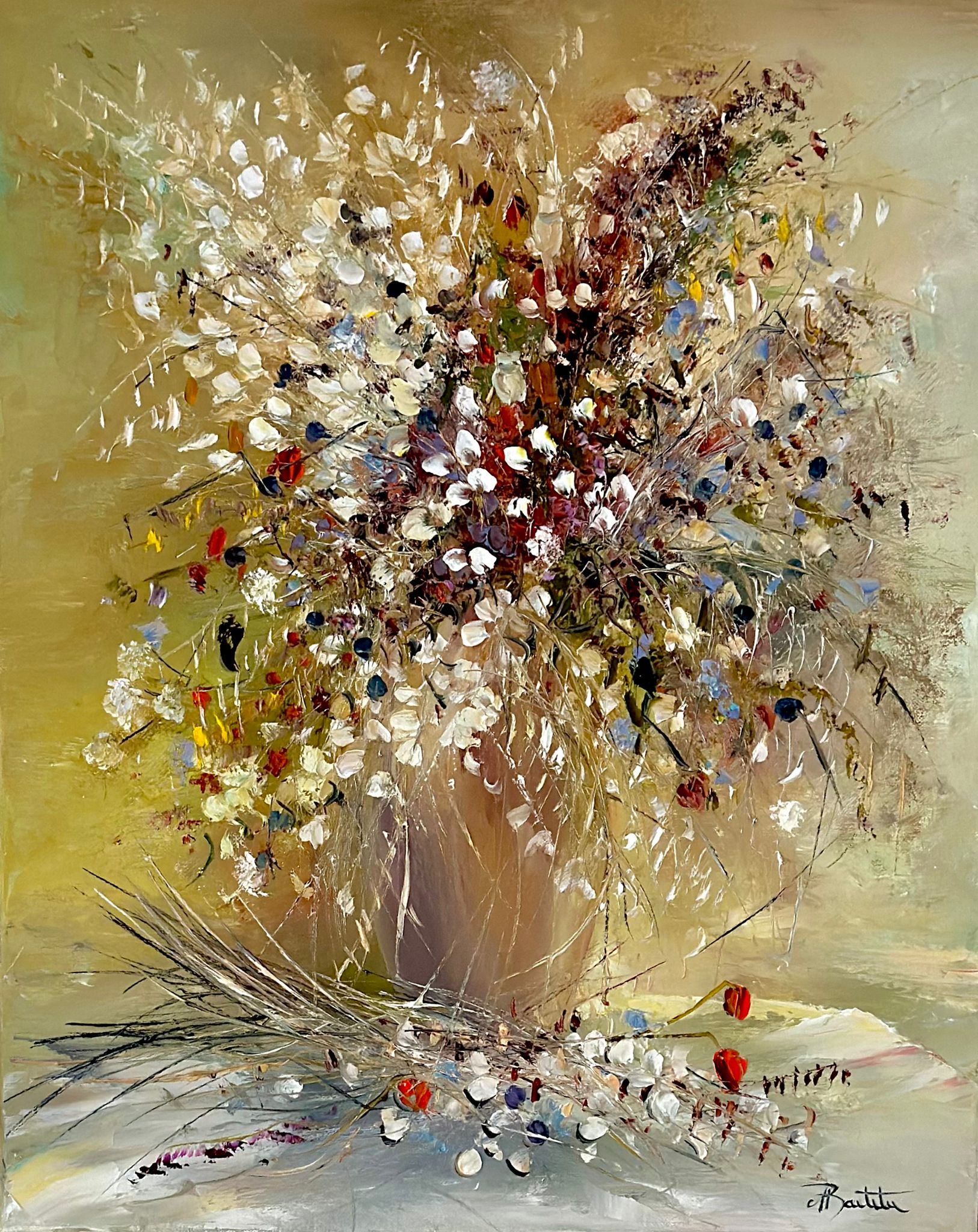 Pictura in ulei pe panza, realizata manual in cutit, dim. 55*45 cm, neinramata.Se poate inrama la cerere.