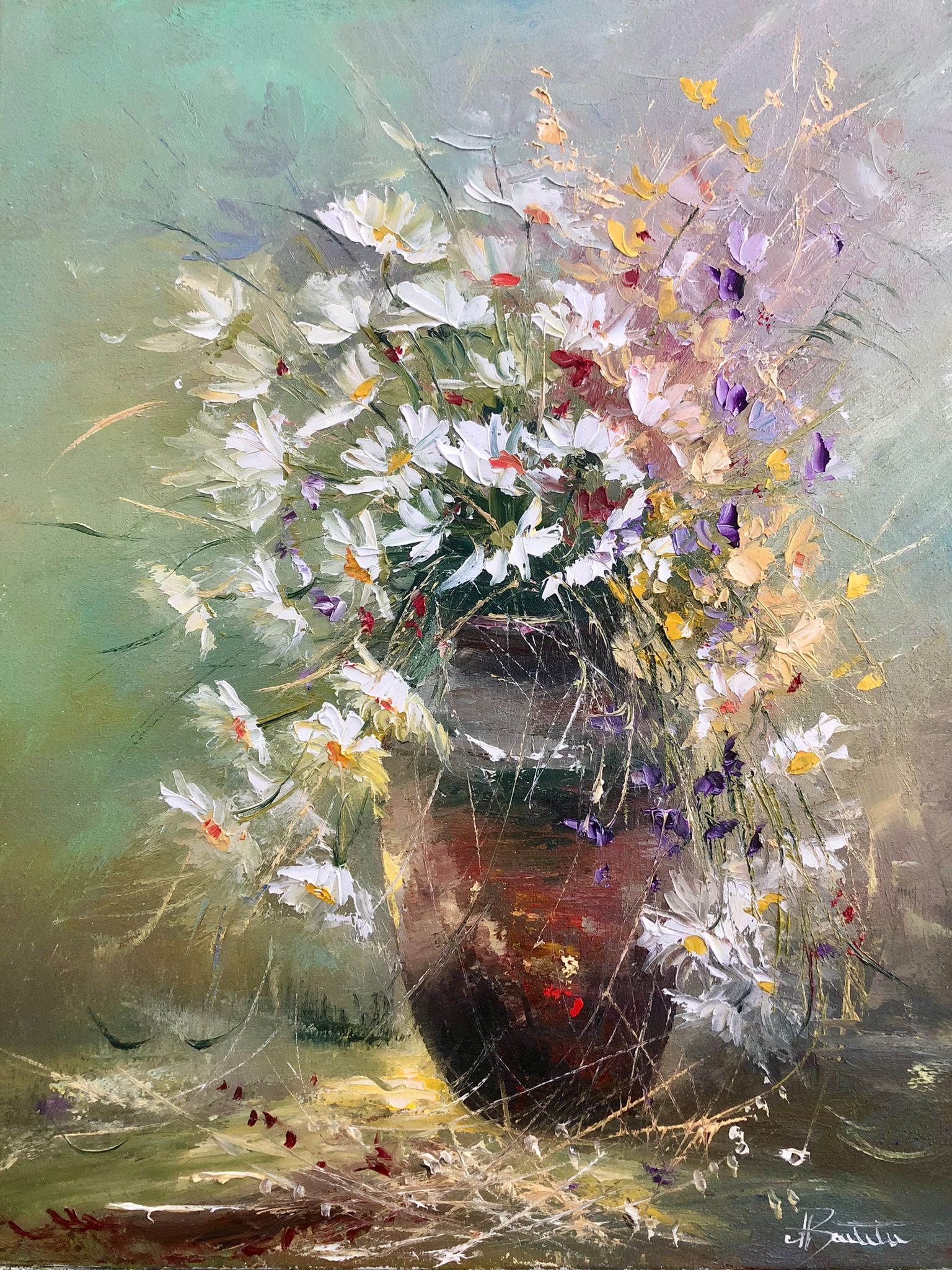 Pictura in ulei pe panza,realizata manual in cutit, dim. 45*35 cm, disponibil neinramat. Se poate inrama la cerere.