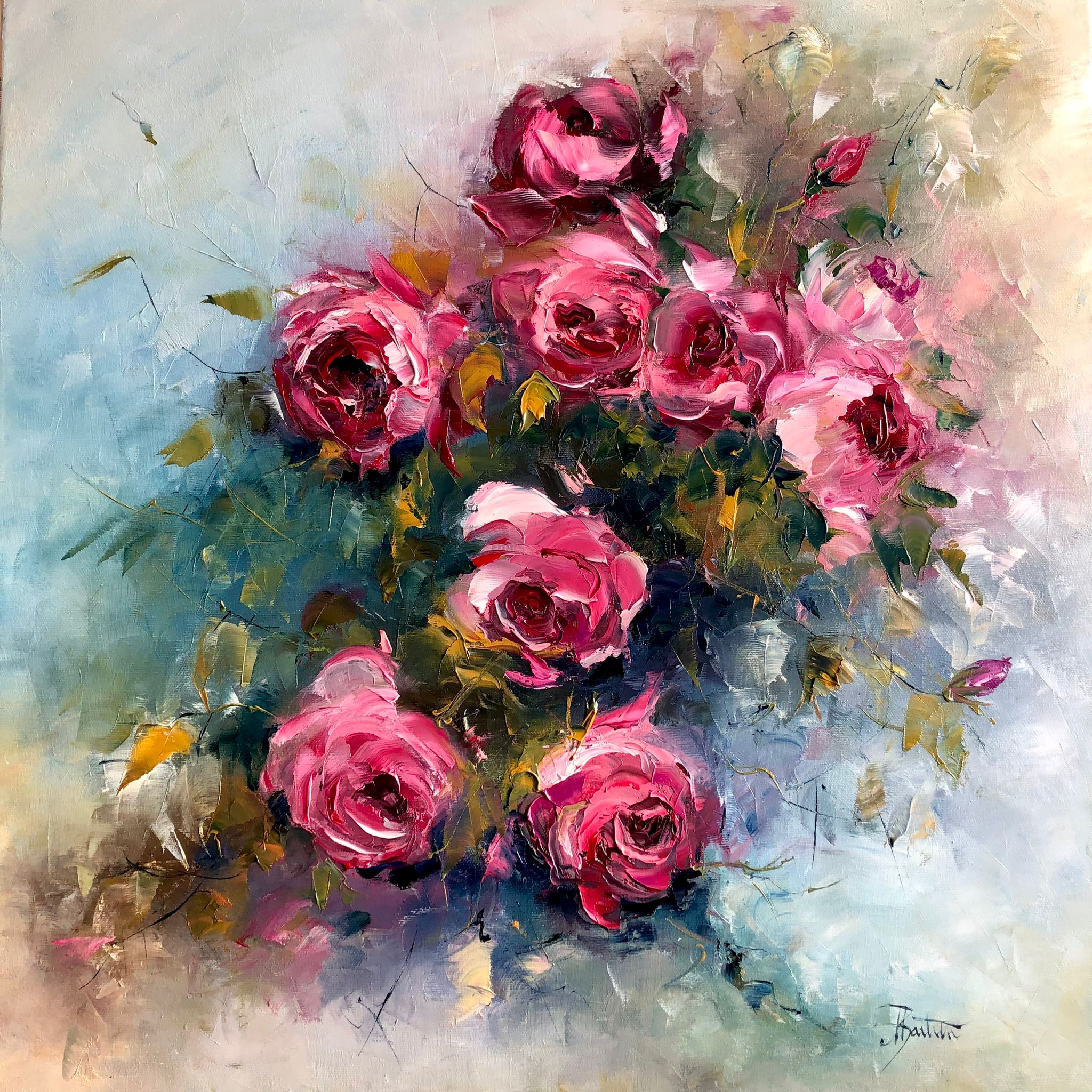 Pictura in ulei pe panza, realizata manual in cutit. Dim. 60*60 cm. Pretul se refera la pictura fara rama care se poate pune la cerere.