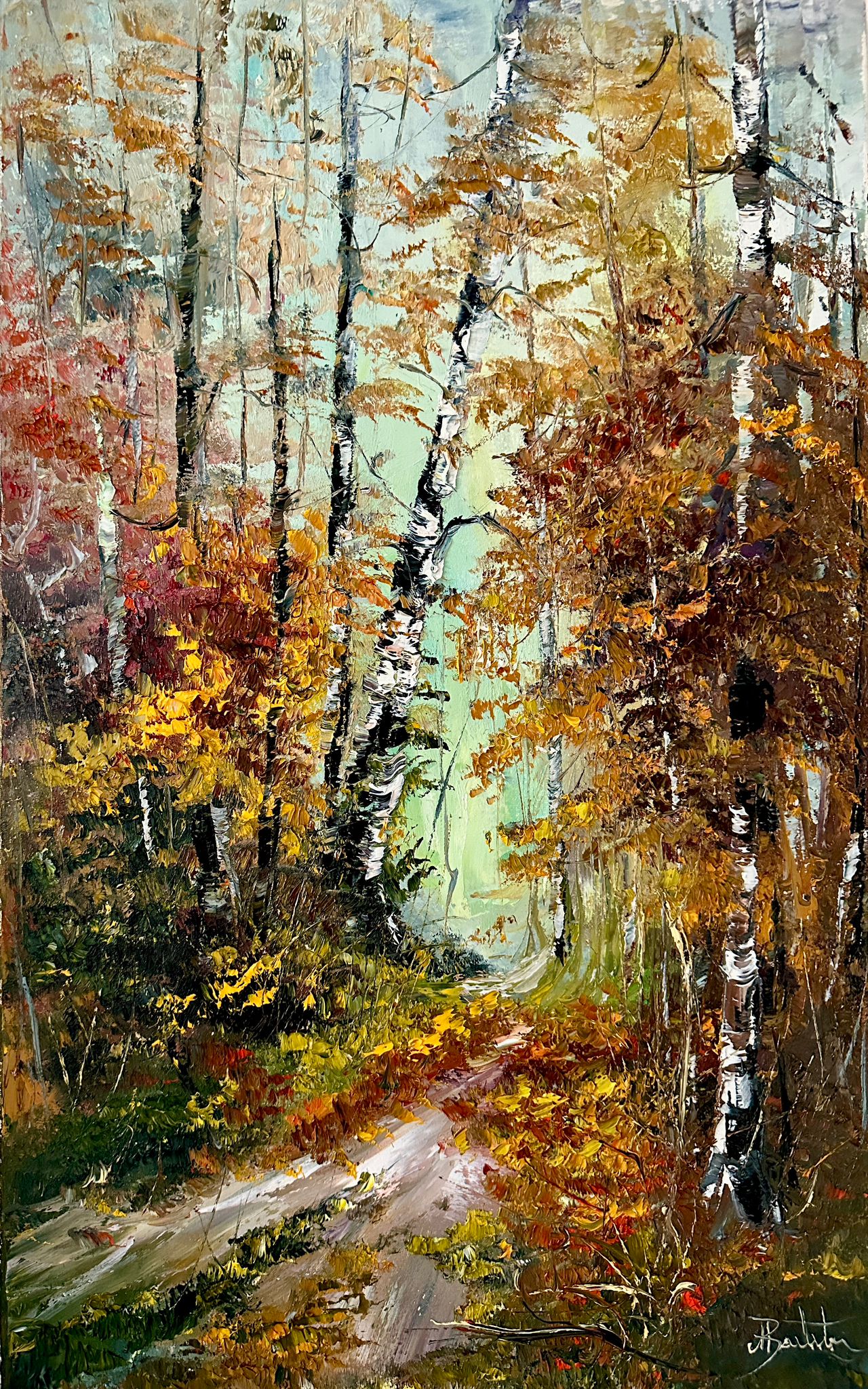 Pictura in ulei pe panza, realizata manual in cutit, 65*40 cm
