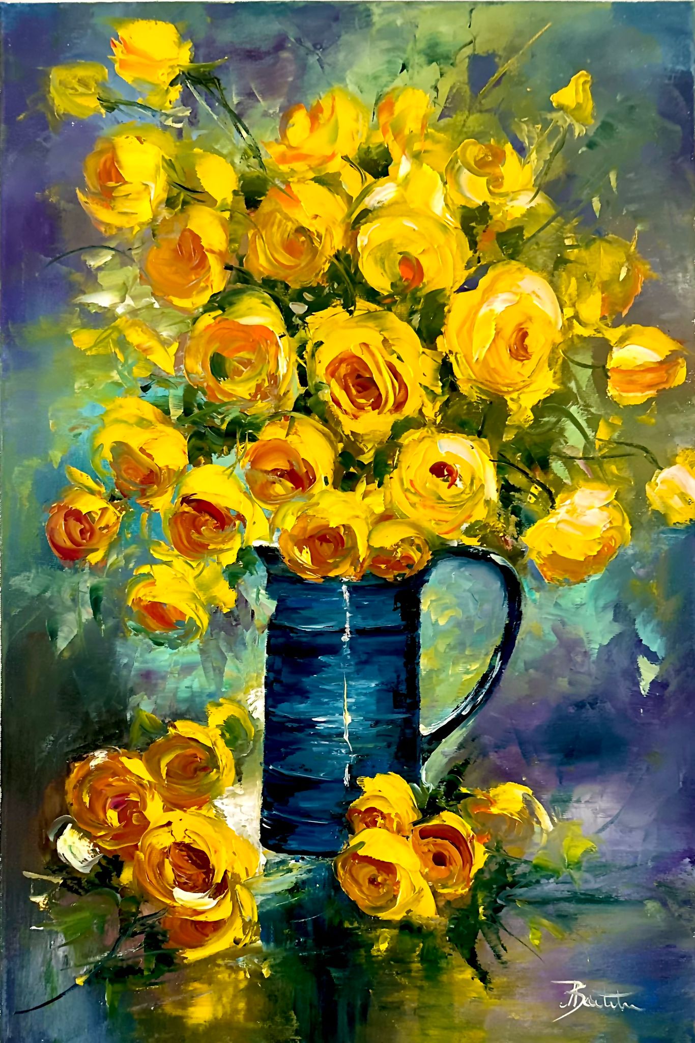Pictura in ulei pe panza, realizata manual in cutit, dim. 60*40 cm, disponibil fara rama care se pune doar la cerere.
