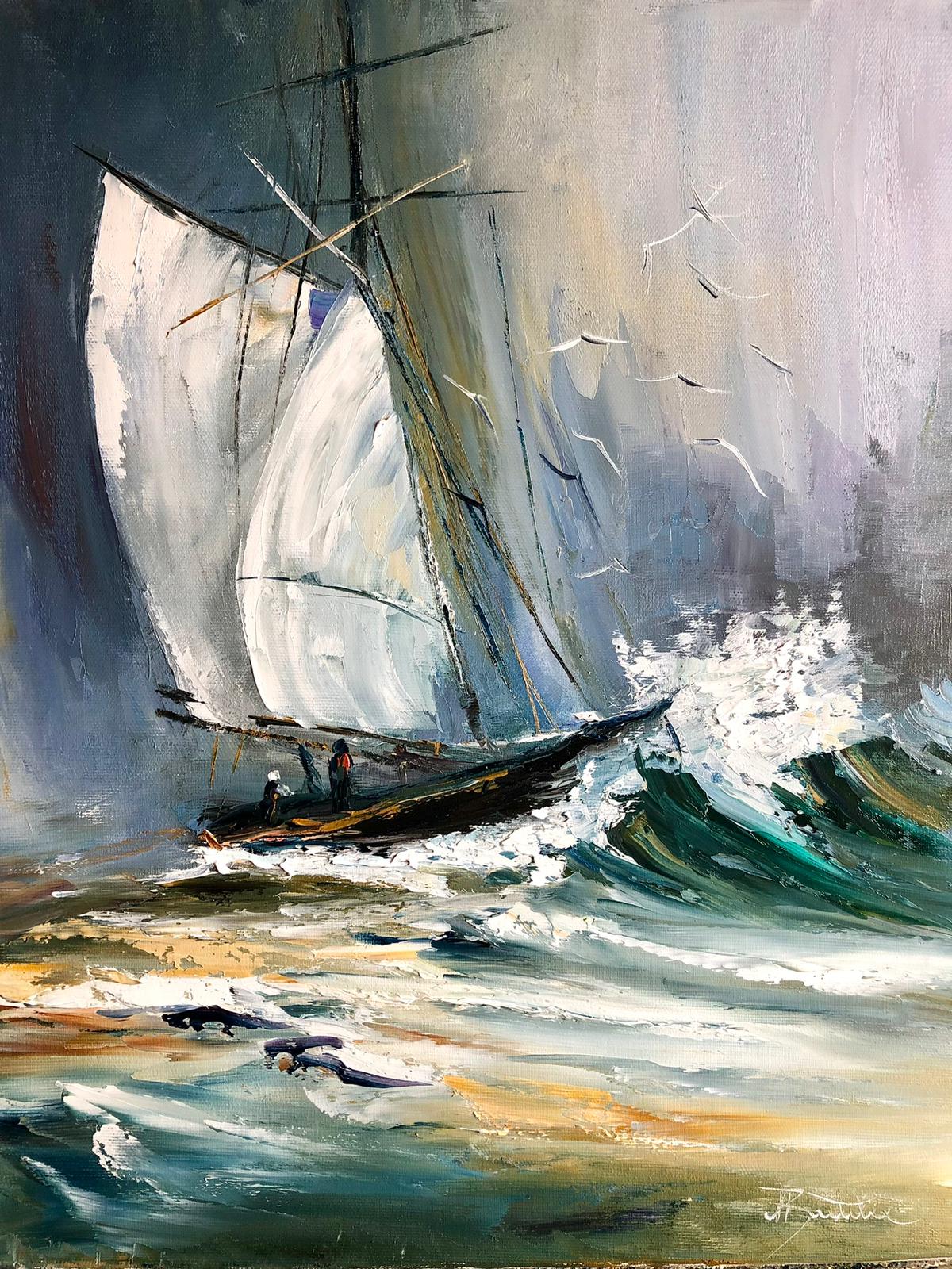 Pictura in ulei pe panza, realizata manual in cutit, dim. 50*40 cm. Pretul se refera la pictura fara rama care se pune doar la cerere.