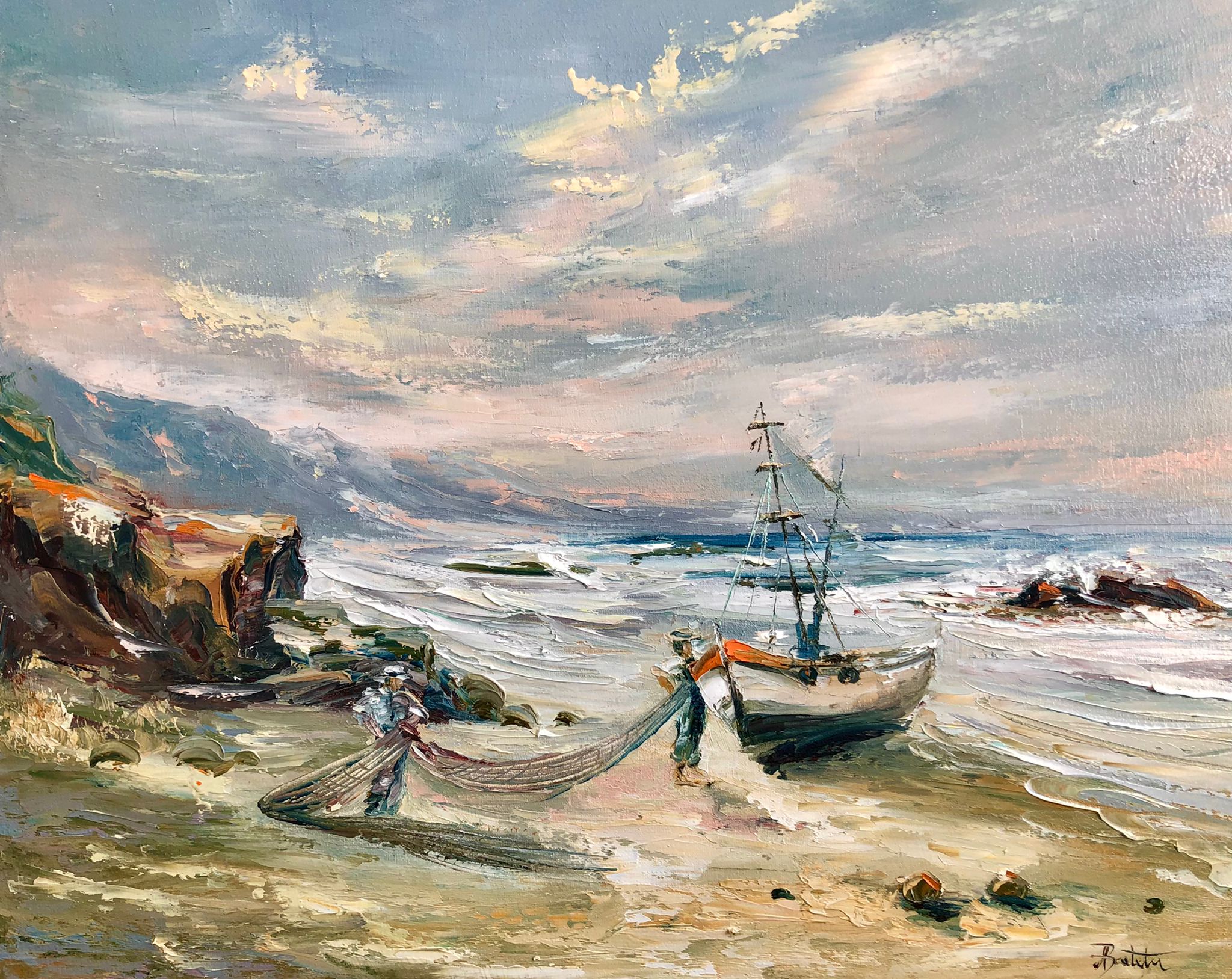 Pictura in ulei pe panza, realizata manual in cutit, dim.45*55 cm, disponibil neinramat. Se poate inrama la cerere.