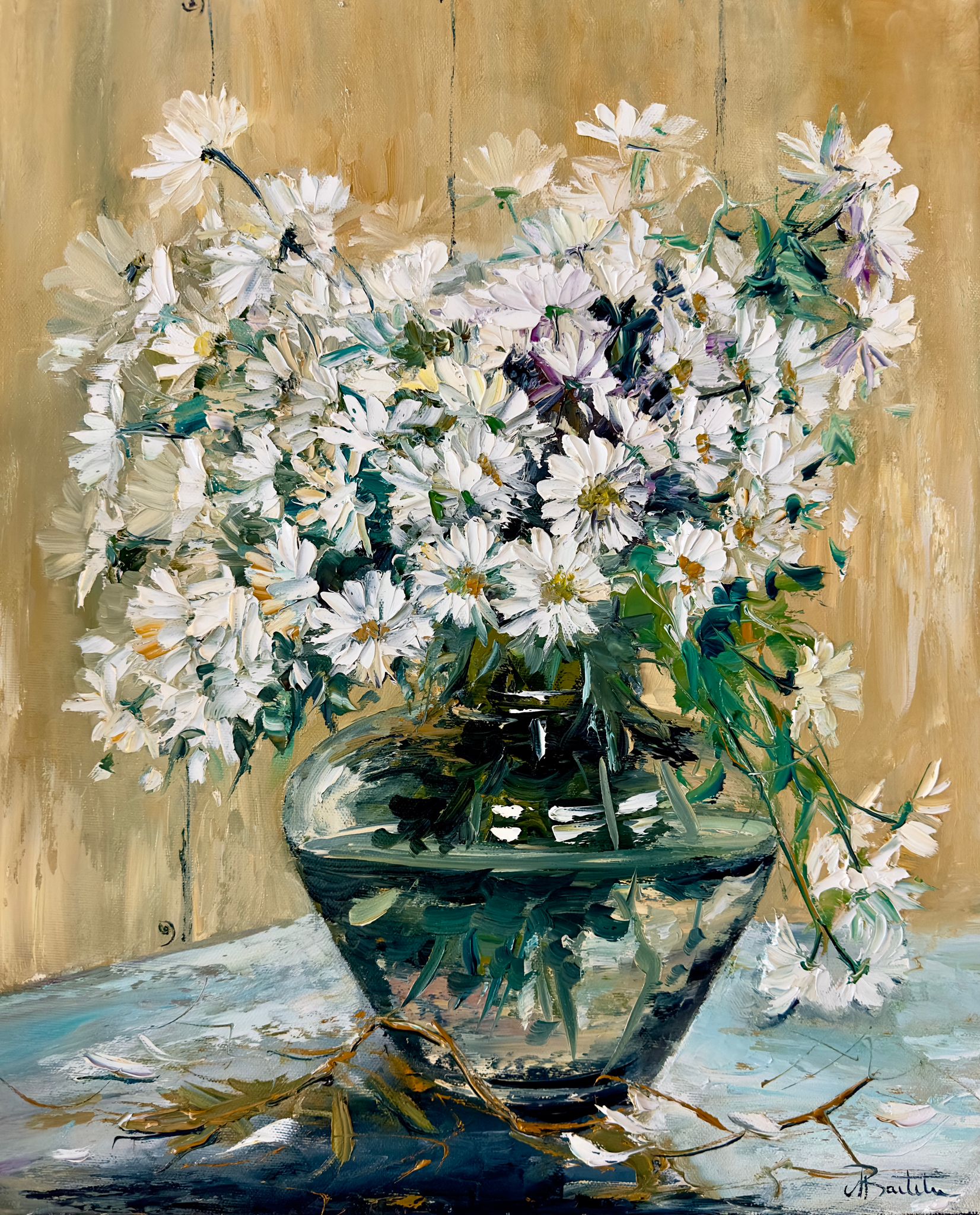 Pictura in ulei pe panza, realizata manual in cutit, dimensiuni:55*45 cm, disponibila neinramata. Se poate inrama la cerere.