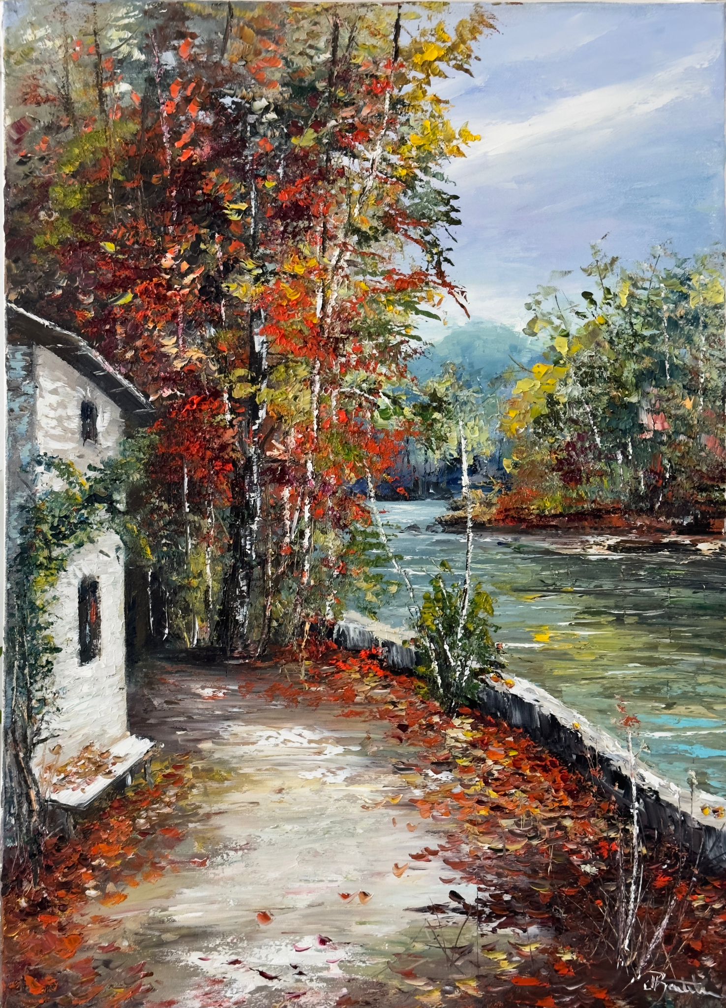 Pictura in ulei pe panza, realizata manual in cutit, dimensiuni : 70*50 cm, disponibila fara rama. Se poate inrama la cerere.