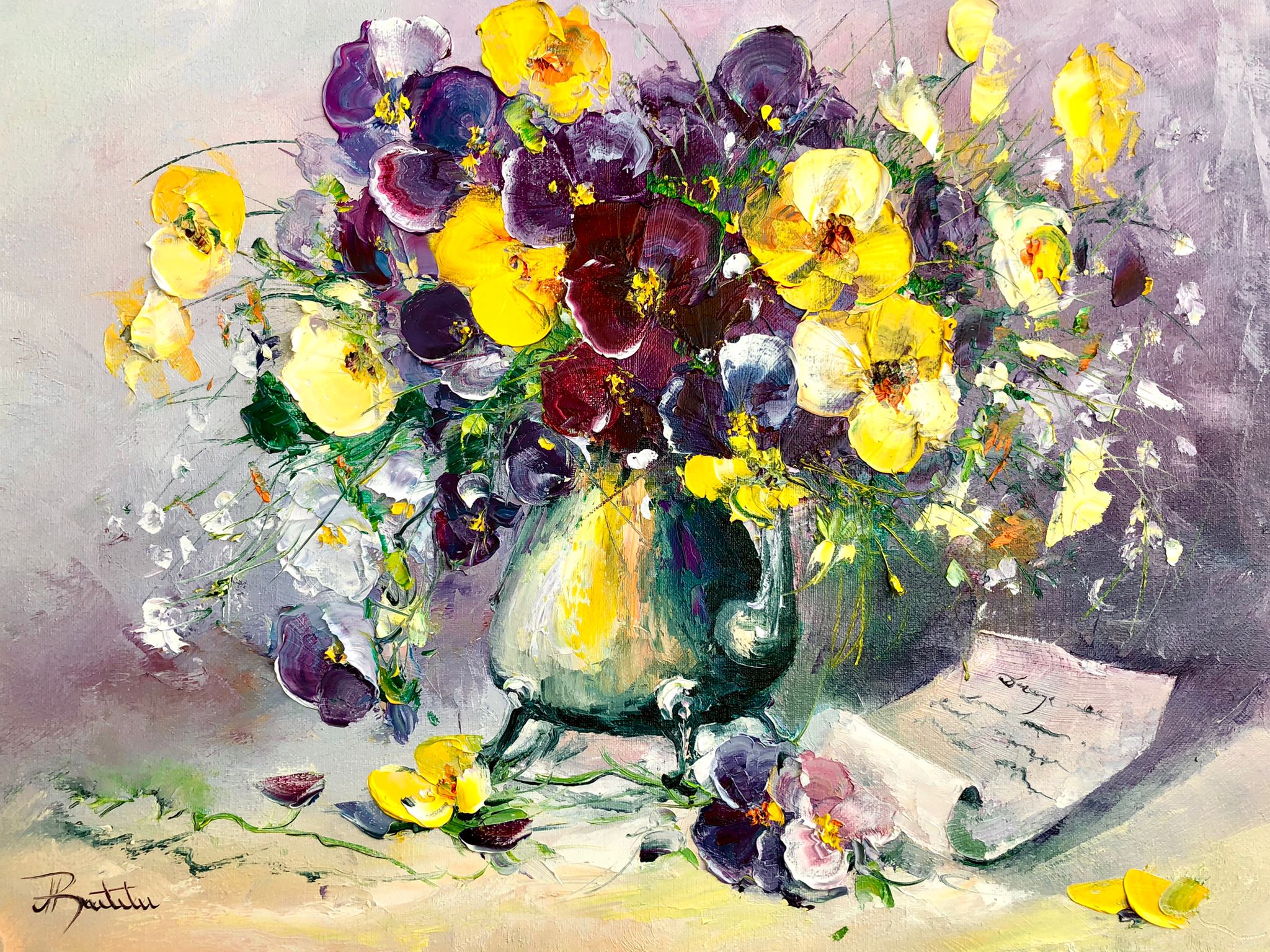 Pictura in ulei pe panza, realizata manual in cutit, dim.40*50 cm. Disponibil neinramat. Se poate inrama la cerere.