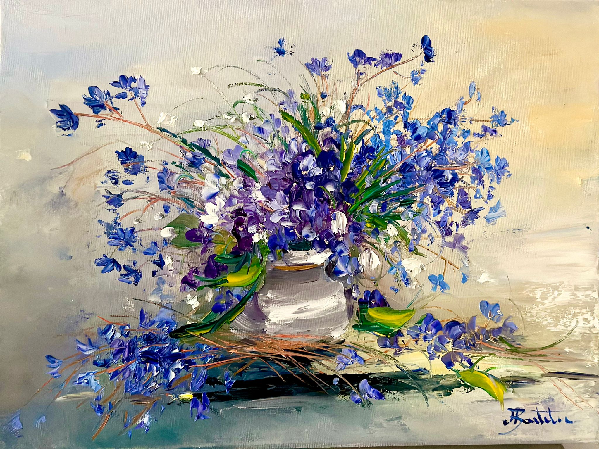 Pictura in ulei pe panza, realizata manual in cutit, dim. 30*40 cm.Disponibil fara rama ca se pune doar la cerere.