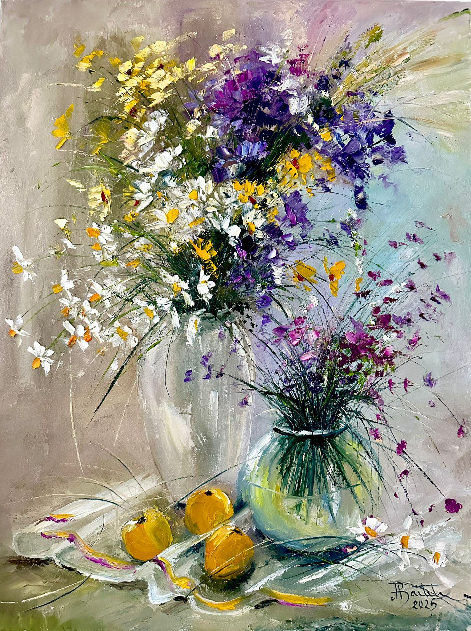 Pictura in ulei pe panza, realizata manual in cutit, dim. 65*50 cm. Neinramat