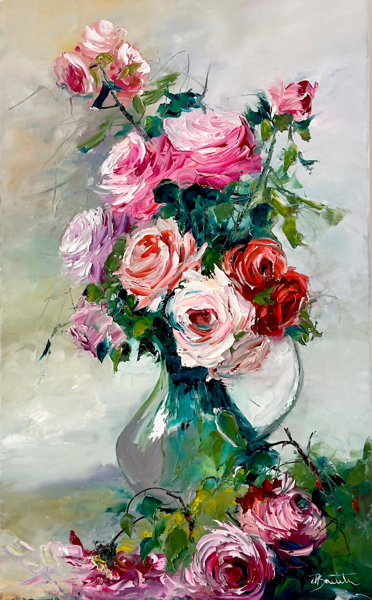 Pictura in ulei pe panza, realizata manual in cutit, dimensiune 65*40 cm, neinramata.