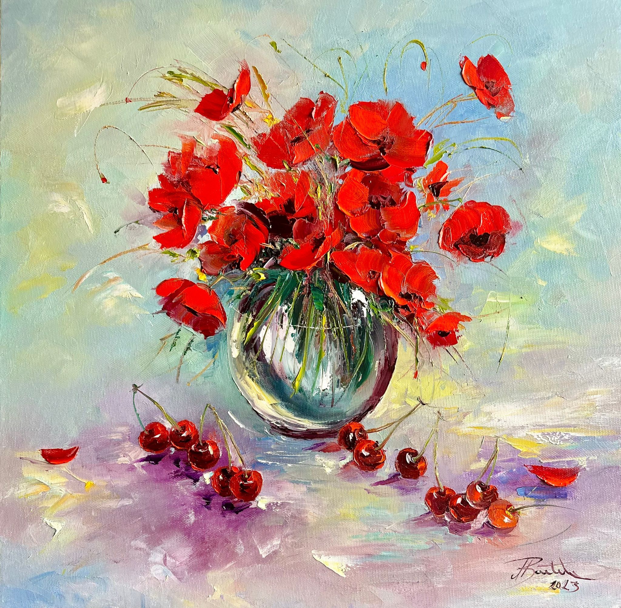 Pictura in ulei pe panza, realizata manual in cutit, dim. 50*50 cm