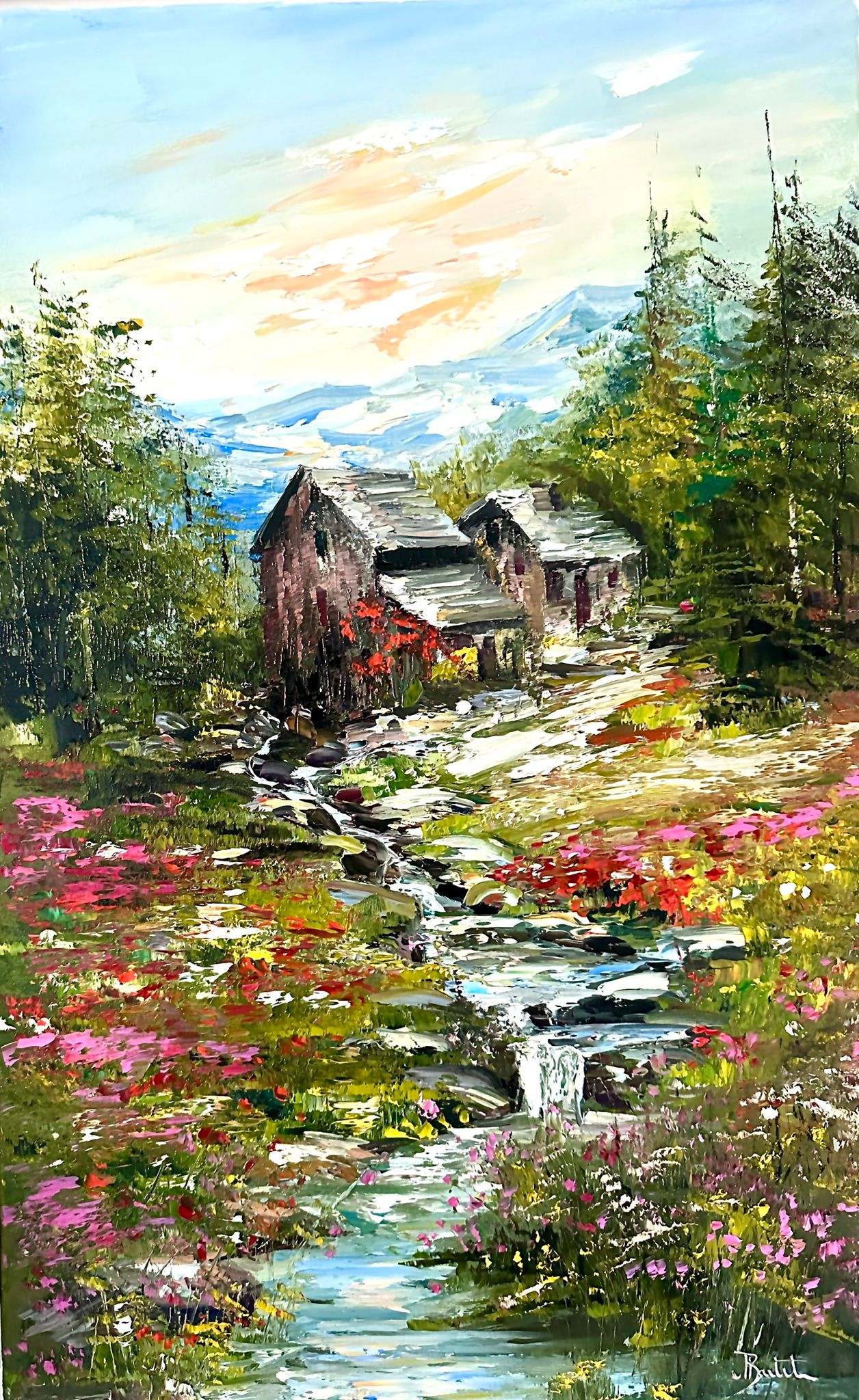 Pictura in ulei pe panza, realizata manual in cutit, Dim. 65*40 cm, neanramata