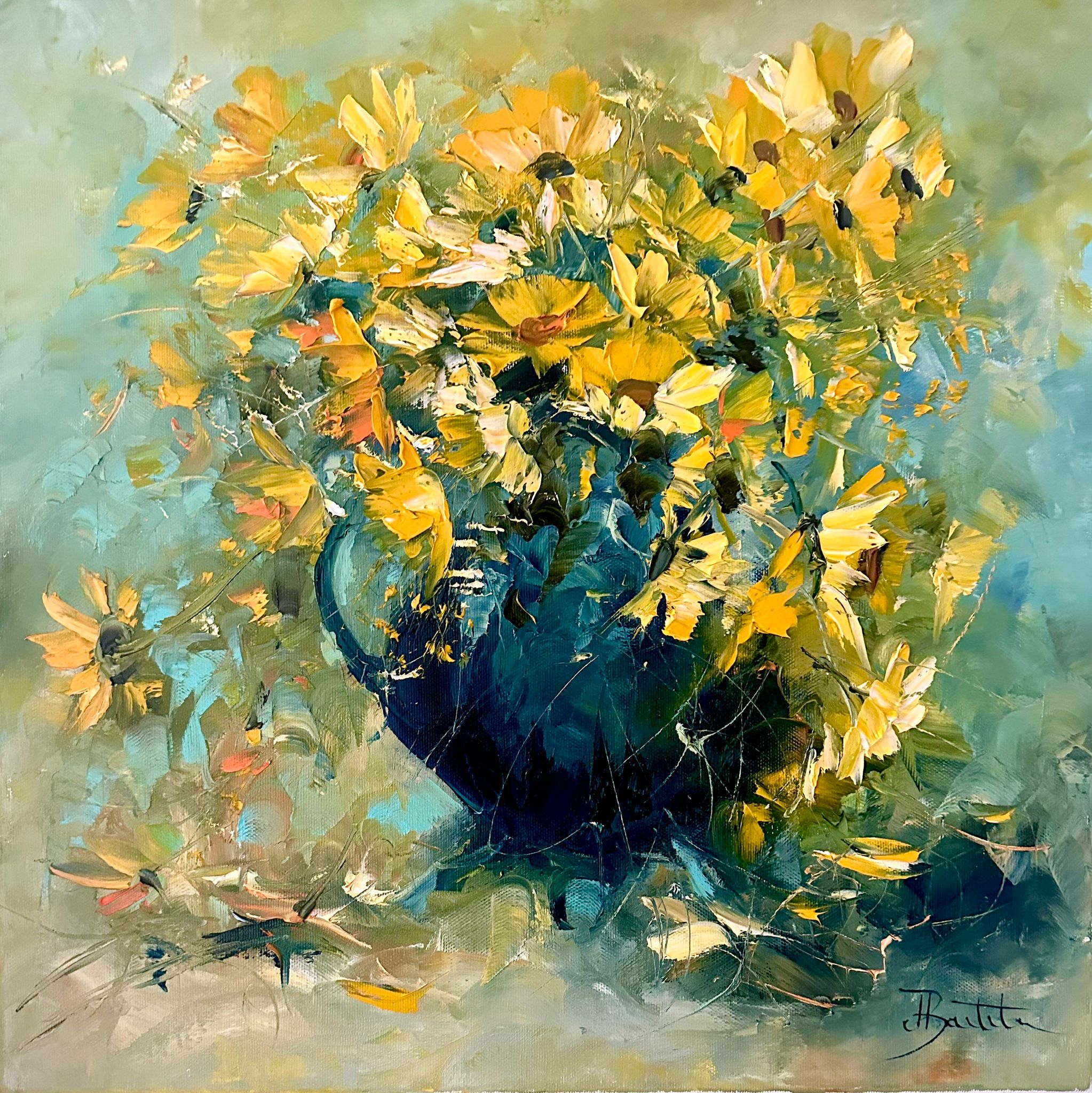 Pictura in ulei pe panza, realizata manual in cutit.Dimensiuni 50*50 cm, neanramata