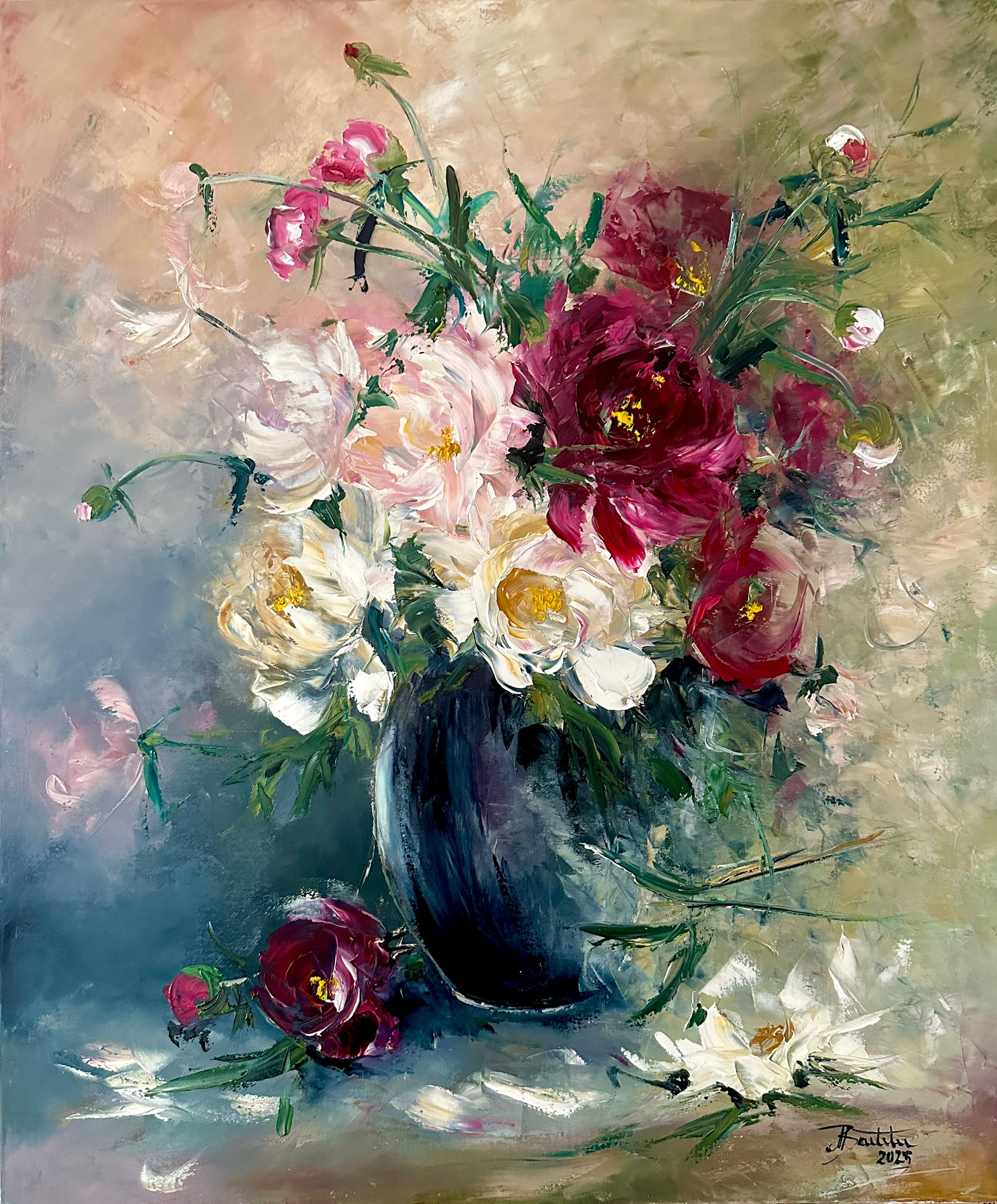 Pictura in ulei pe panza, realizata manual in cutit, dim. 60*50 cm, disponibila neintramata. Rama se poate pune la cerere.