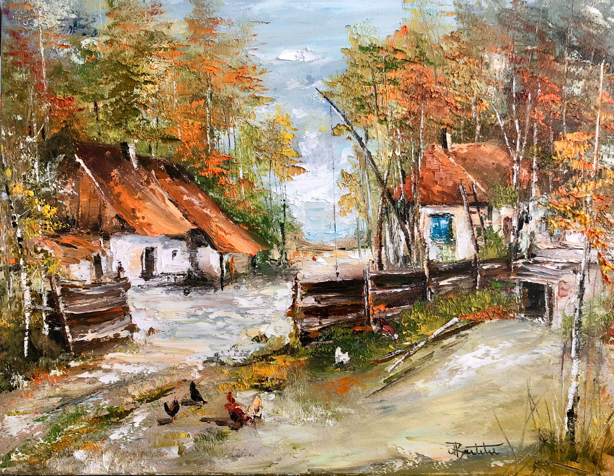 Pictura in ulei pe panza, realizata manual in cutit, dim. 40*50 cm, disponibil neinramat. Se poate inrama la cerere.